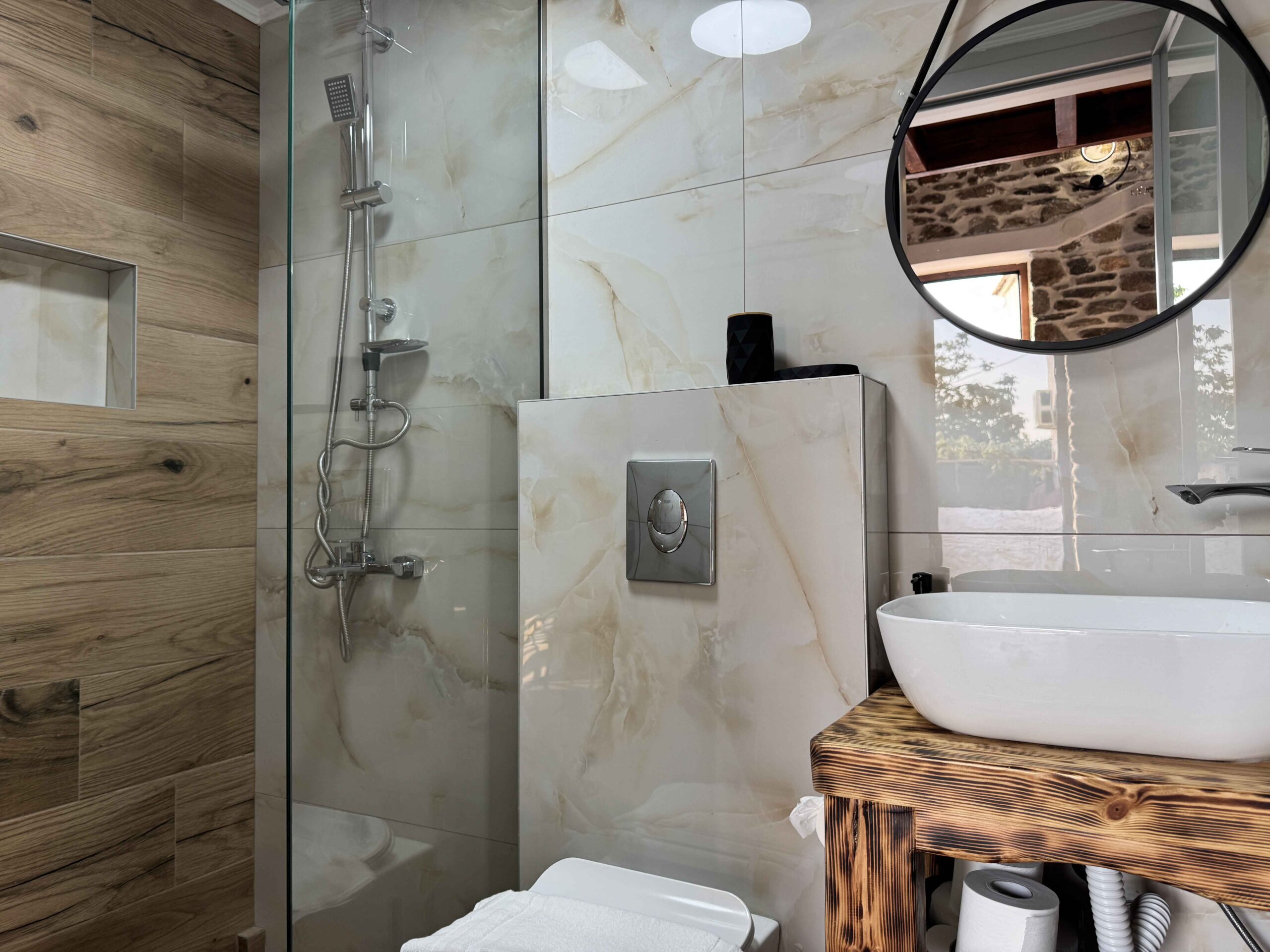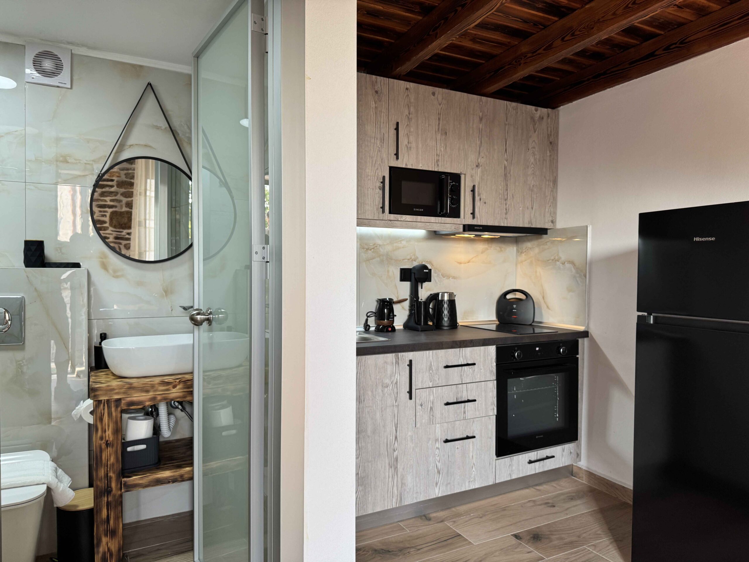 AEM Apartments are located in the village of Prinos, Thassos. They offer comfortable accommodation in a quiet residential setting. Local amenities, tavernas, and everyday village life are all close by. The location works well for guests who want a practical and relaxed base for exploring the island.