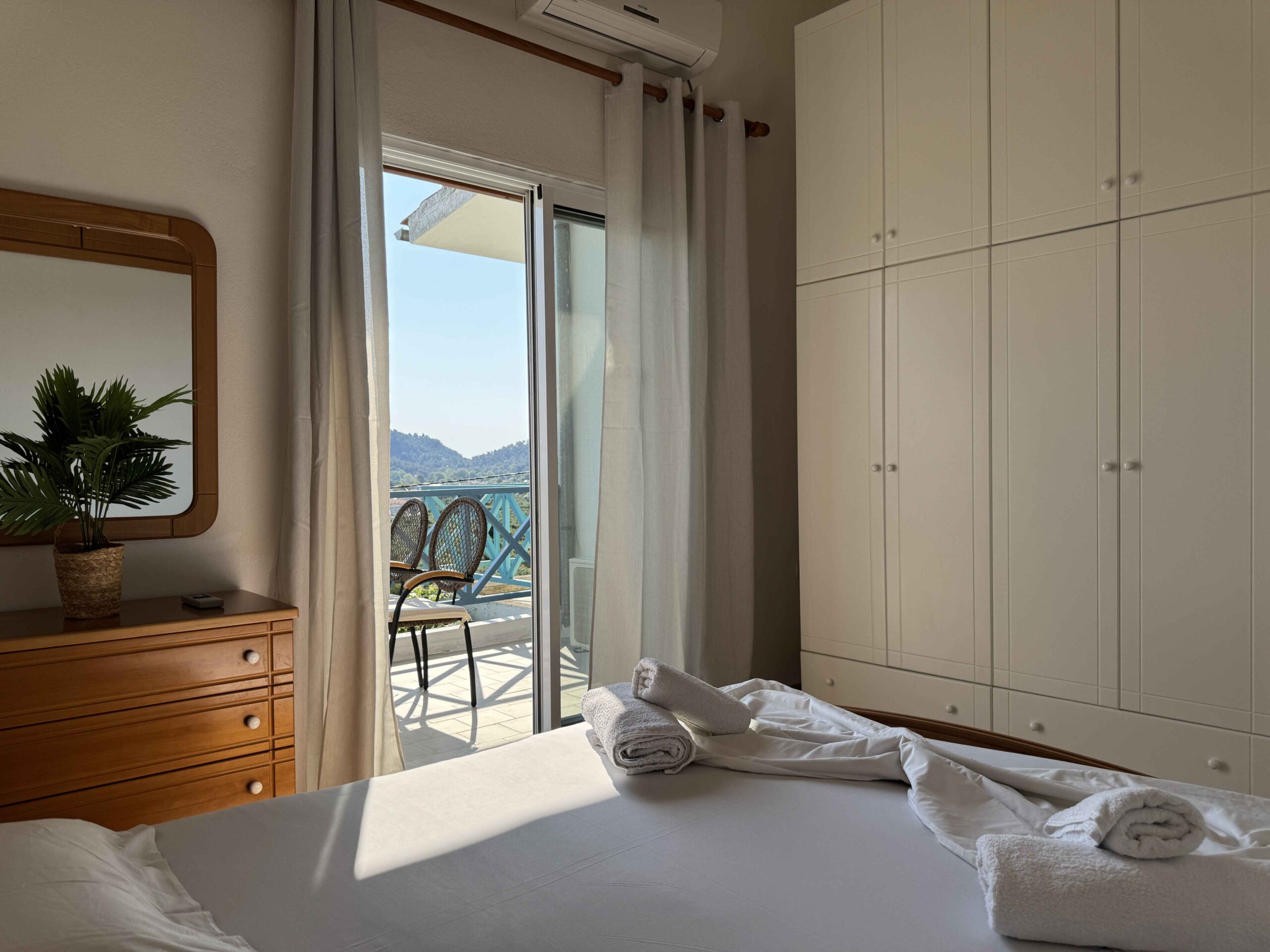 Outdoor areas include a terrace and garden with open views, offering space to relax throughout the day. With private on-site parking, Davanos House provides a practical and well-structured base. For those looking for a house in Limenas, Thassos, it is a reliable and comfortable choice.