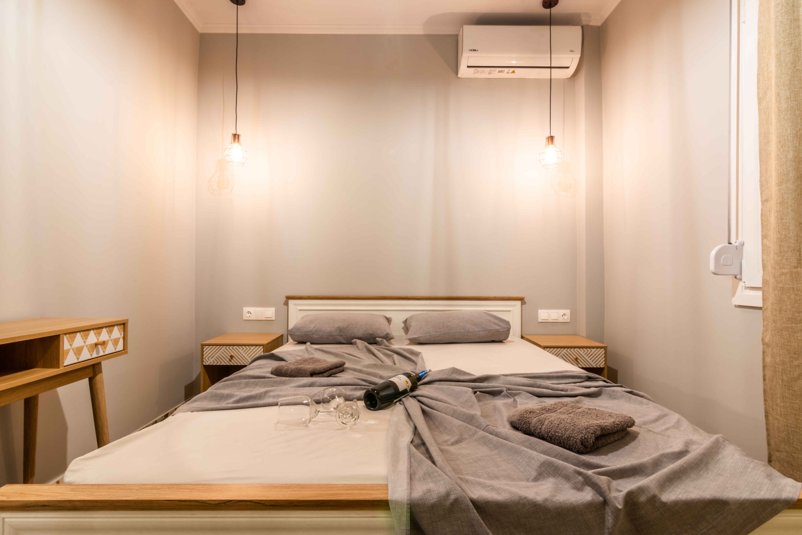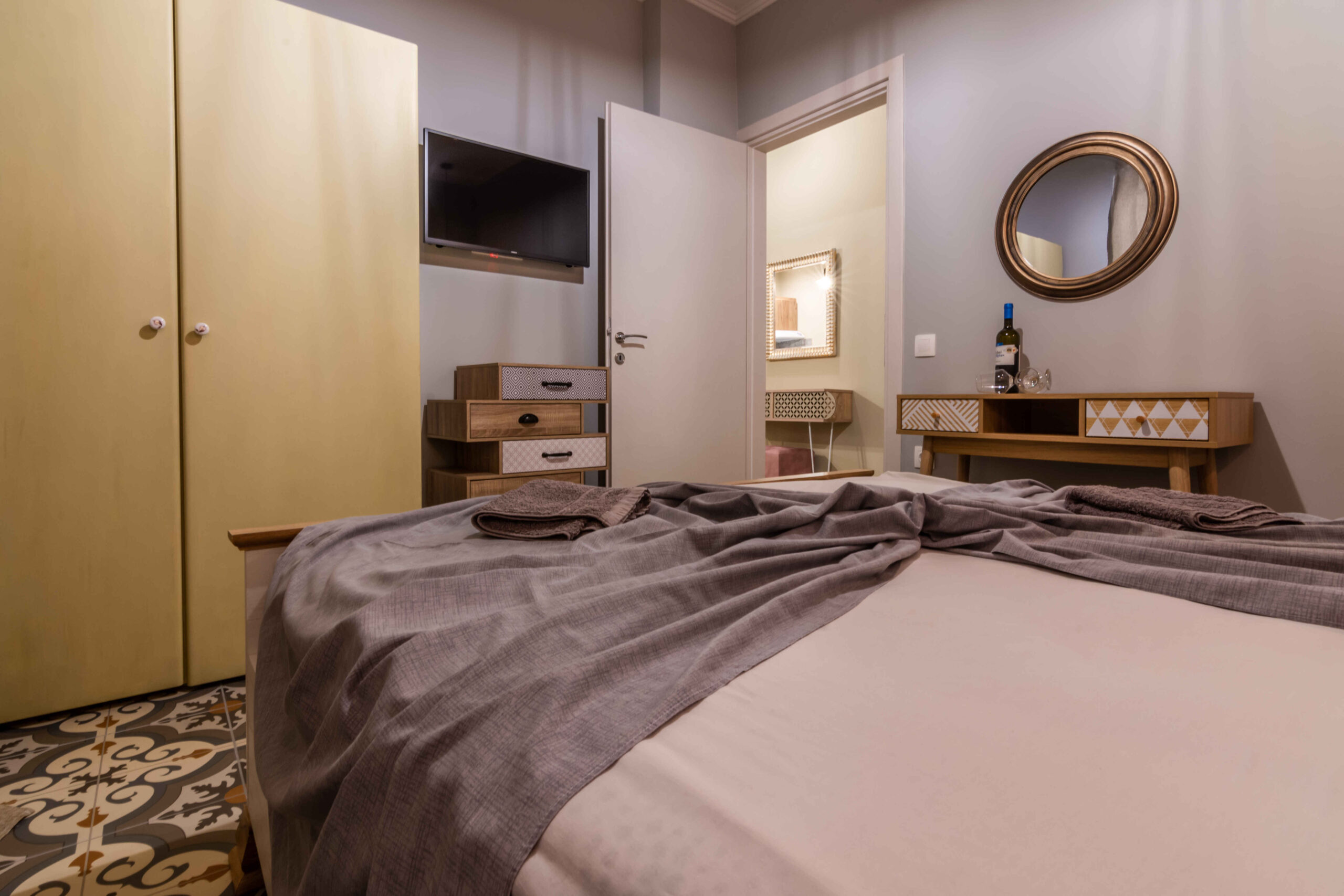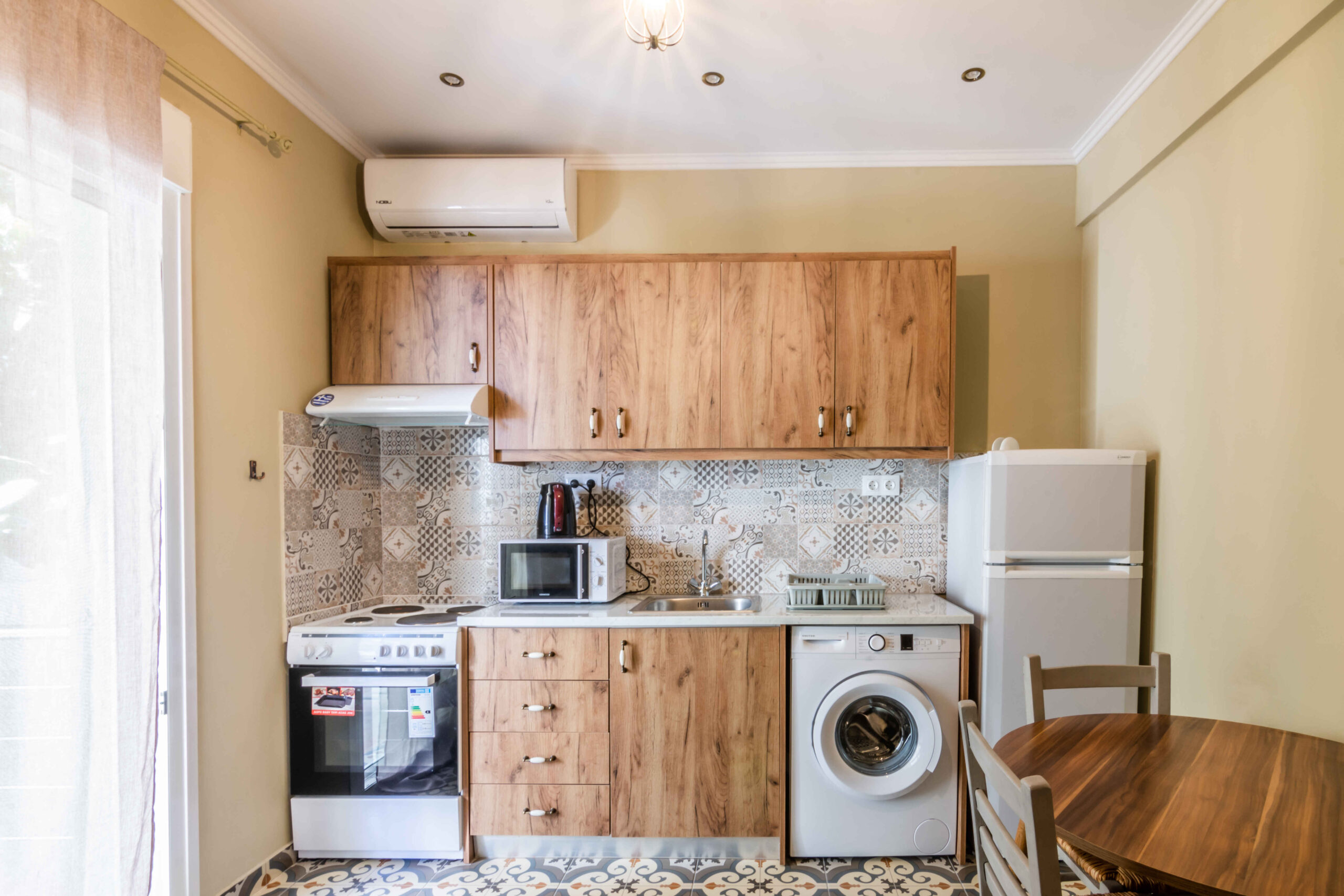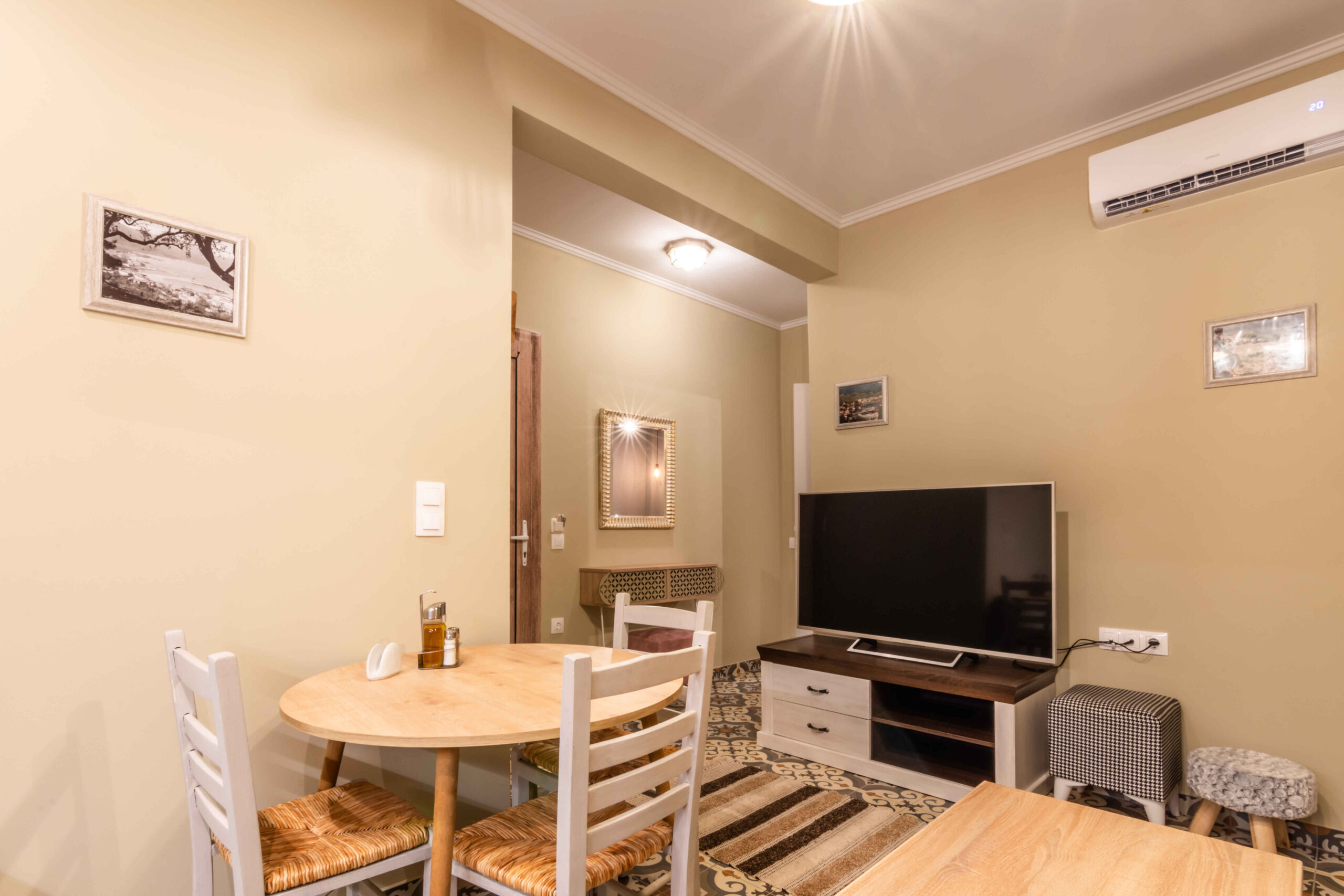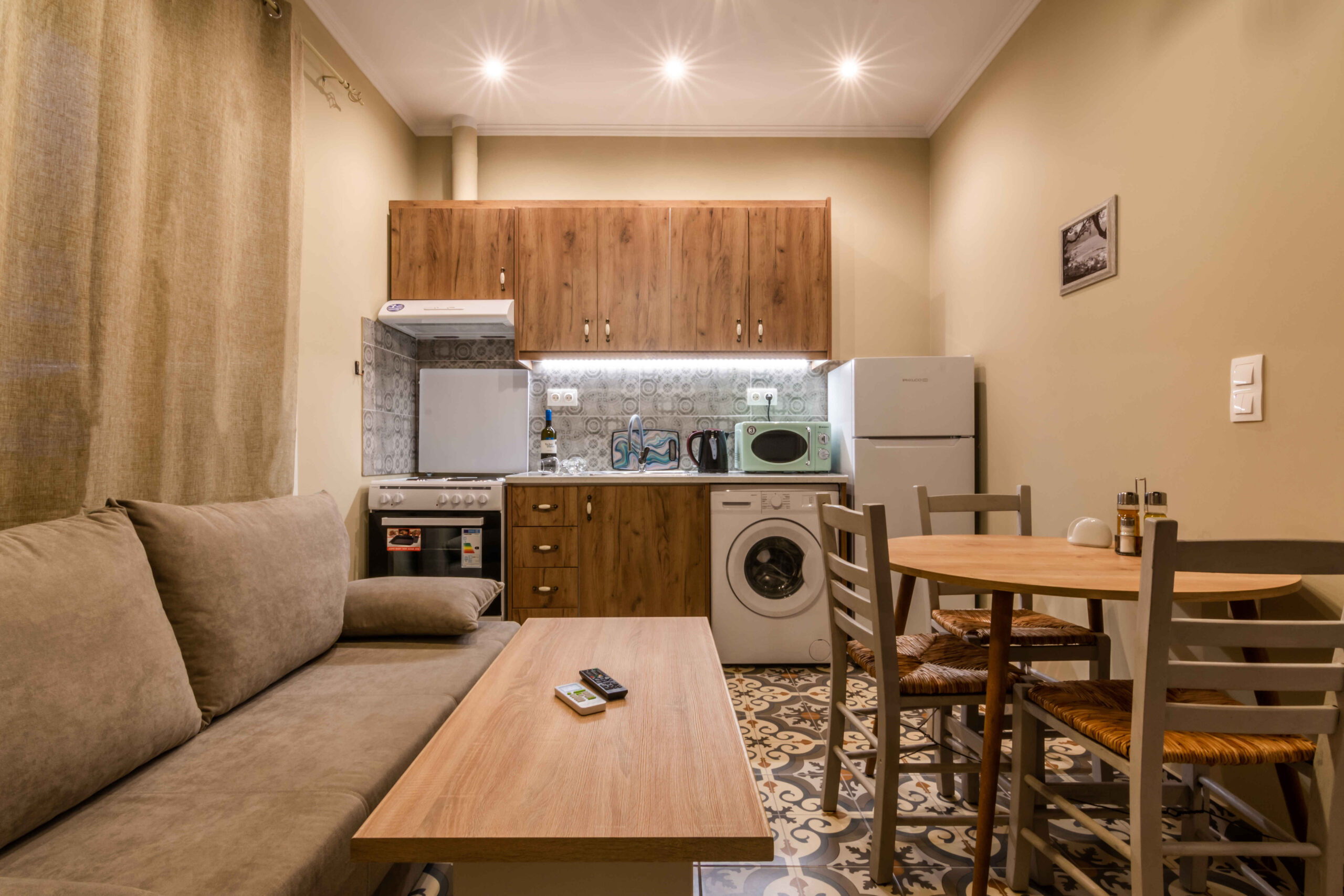 Each apartment includes a separate bedroom, a comfortable living area, and a fully equipped kitchen. The layout supports independent stays and works well for couples or small families. Guests can prepare meals easily and settle into a simple daily routine, whether staying for a few nights or a longer visit. The identical design of the two apartments also makes Goutadika a convenient choice for friends or relatives travelling together.