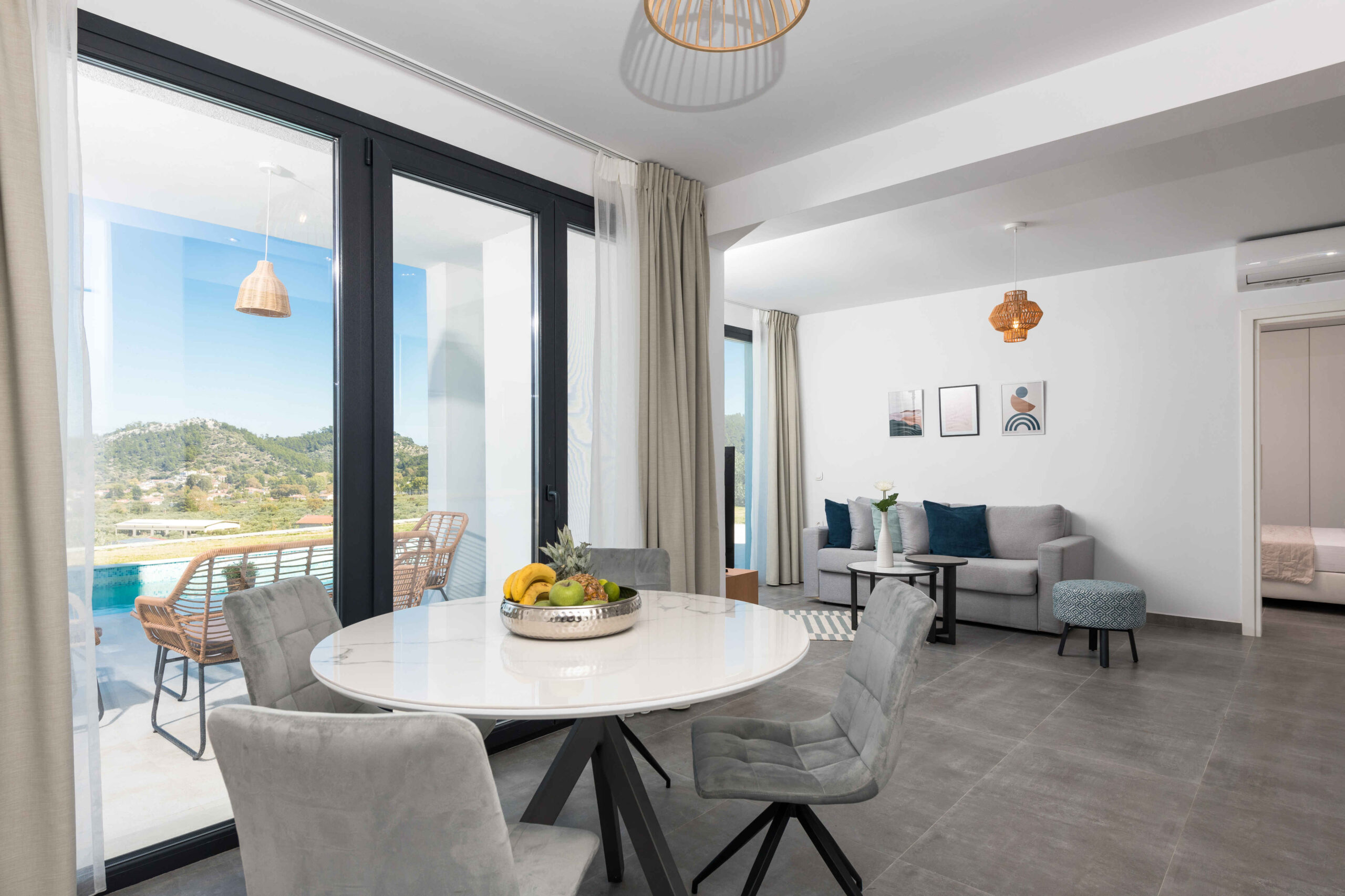 Outside, the villa features a private swimming pool and multiple terraces with open views. A garden area with BBQ facilities provides space for outdoor dining and quiet evenings. These outdoor areas create different zones to enjoy throughout the day.